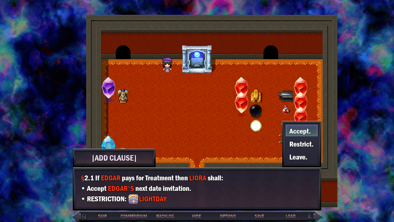 This feature is also used in the Clause Selection Dialogue which was needed to implement the new Remova Clause function that you can find in the Deluxe Console, alongside the Add Clause function. Besides Instant-Type clauses (such as learning Seductive Stance), you can now use the console of the deluxe edition to pretty much edit Liora's contract as you like.