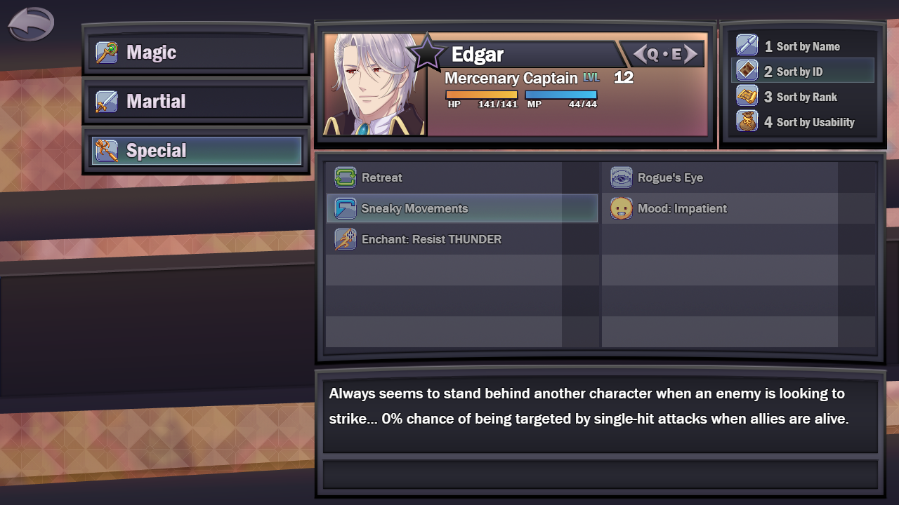 - Then we have the eternal debate about random numbers. In this case, it's about the probability of enemies hitting Edgar, causing some players to savescum attacks to hit him. The experimental change here is adding a passive for Edgar that guarantees that he won't be attacked as long as Liora and Rean are alive, reducing the need to savescum for the event of Edgar getting hit. I mostly did testing of this in the case where the party was only made up of Liora and Edgar and didn't like the change there as all enemies hitting only Liora didn't quite play well. But I still want to test it out to see the consequences and here more opinions on this.
