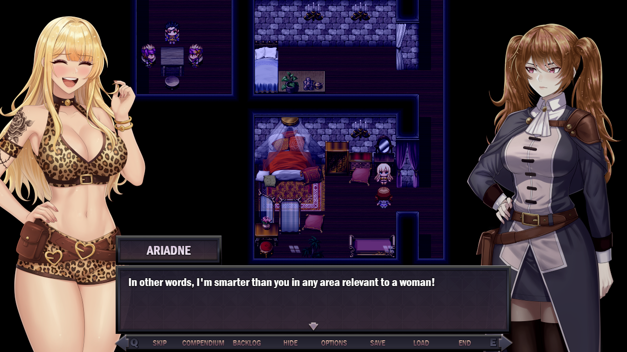 - Willpower will now be added to Orgasm Threshold when Liora is doing a lewd action with a partner she doesn't want to cum with (so basically Edgar). I found that reaching the necessary pleasure treshold was quite fine in the early versions, but now it feels like orgasms start a bit too soon. This should give a better progression and also make mechanics like Sexual Frustration more relevant.